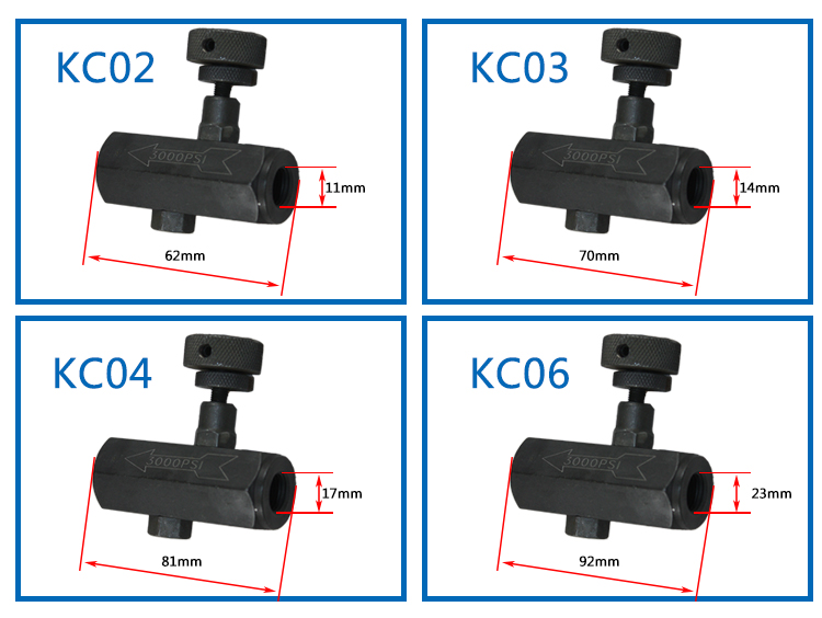 KC管式節流閥又稱CS流量控制閥,KC-02即CS1002,壓力21Mpa,流量10L/min