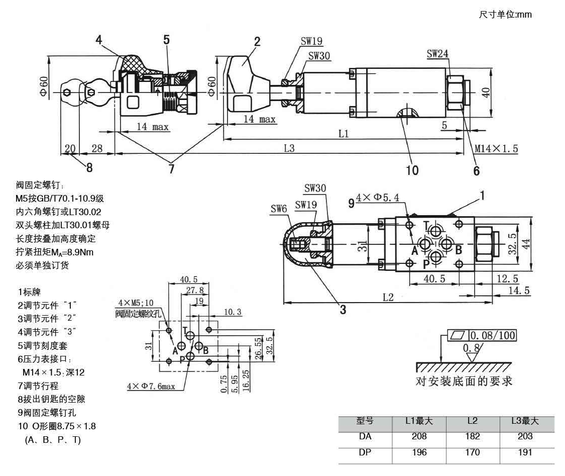 -3種調(diào)節(jié)形式 :旋鈕 帶保護(hù)套的調(diào)節(jié)螺栓 帶鎖旋扭